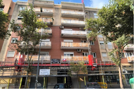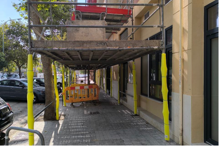 Trabajo: Andamio de cremallera bimástil de la marca Alimak y marquesina de protección vial.